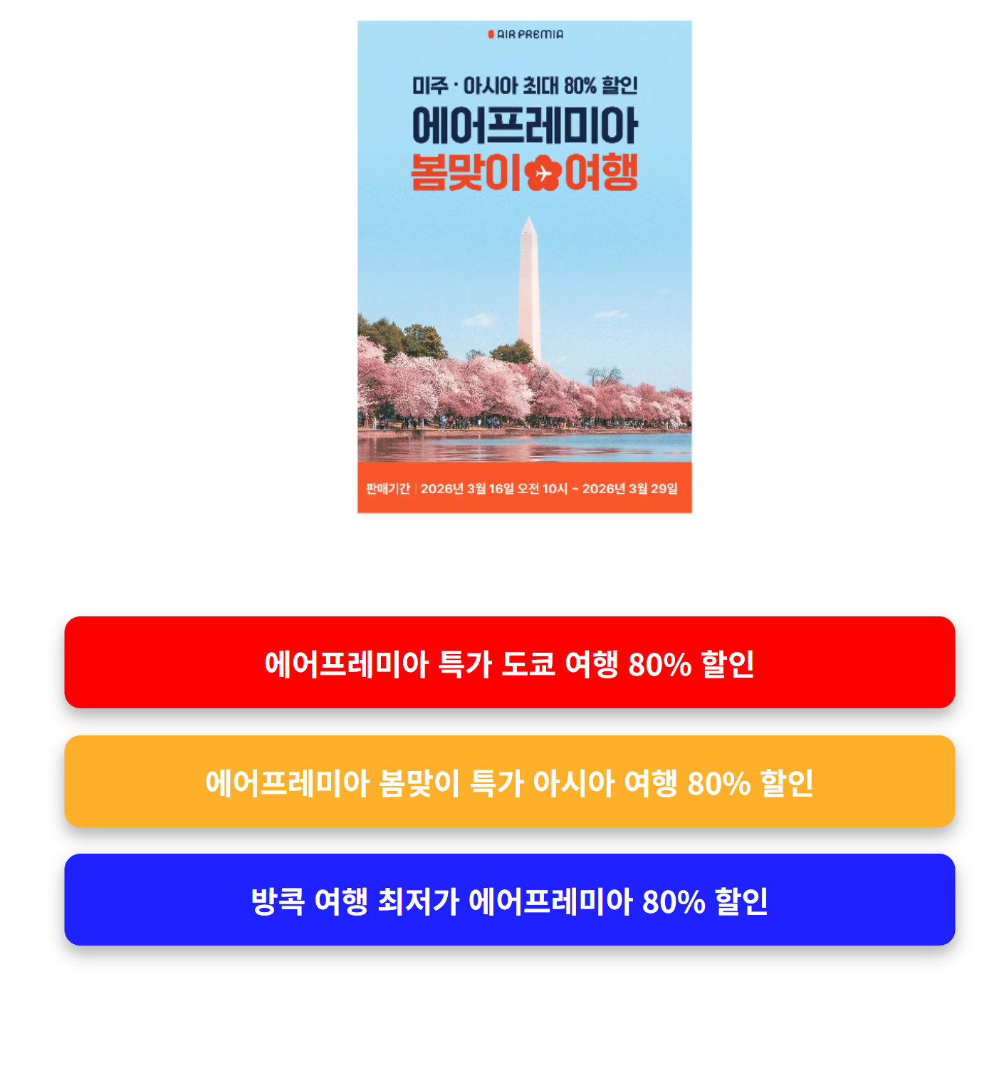 에어프레미아 봄맞이 특가 아시아 여행 80% 할인 (언제까지 가능?)